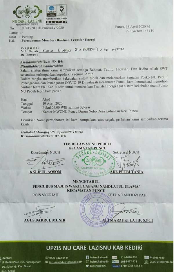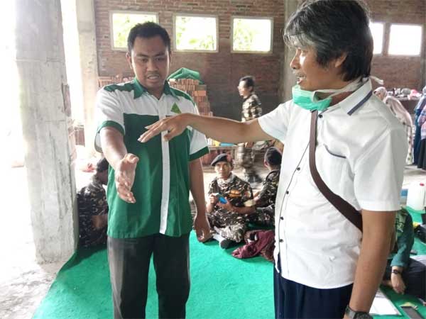 Ketua DPC Kediri, Fadholi, melakukan install anti virus pada anggota NU CARE