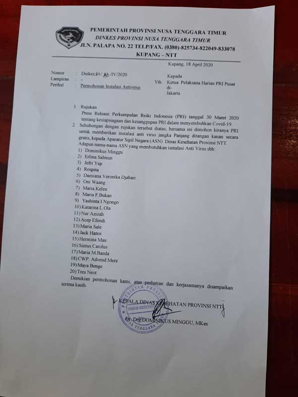 Ketua DPD NTT, Markus Tunggal, melakukan install anti virus pada jajaran dinkes NTT