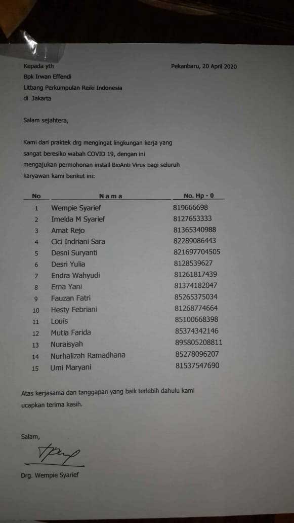 Permintaan install dari klinik Drg Wempie Syarief